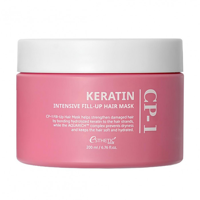 Регенерирующая маска для сухих и поврежденных волос с кератином Esthetic House CP-1 Keratin Intensive Fill-up Hair Mask помогает укрепить структуру прядей, возвращает им гладкость, плотность и естественный блеск после окрашивания, осветления, горячей укладки и других агрессивных процедур.